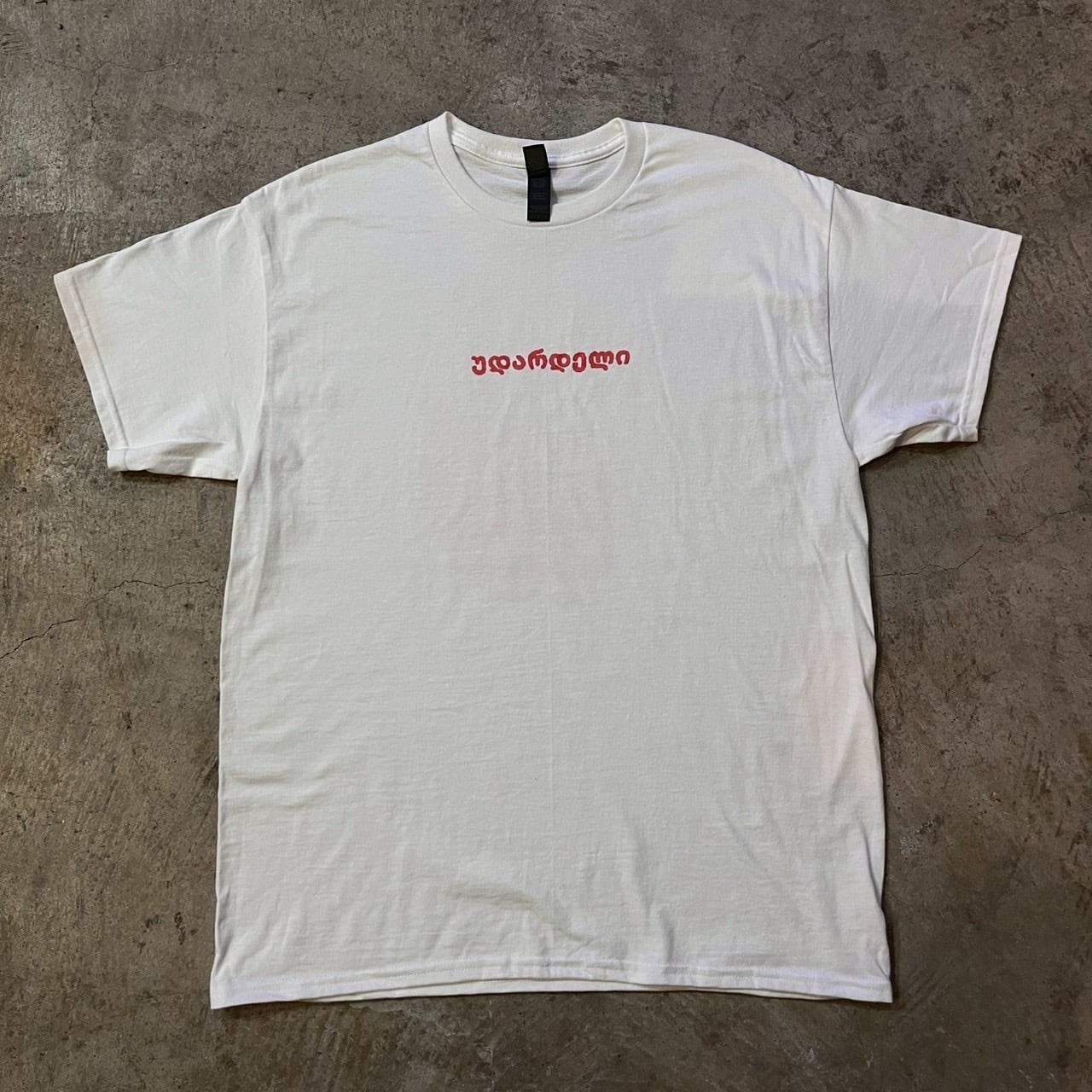 フロントにジョージア文字で"careless"を意味する"უდარდელი"(ウダルデリと読みます)を手描きフォントでオン。